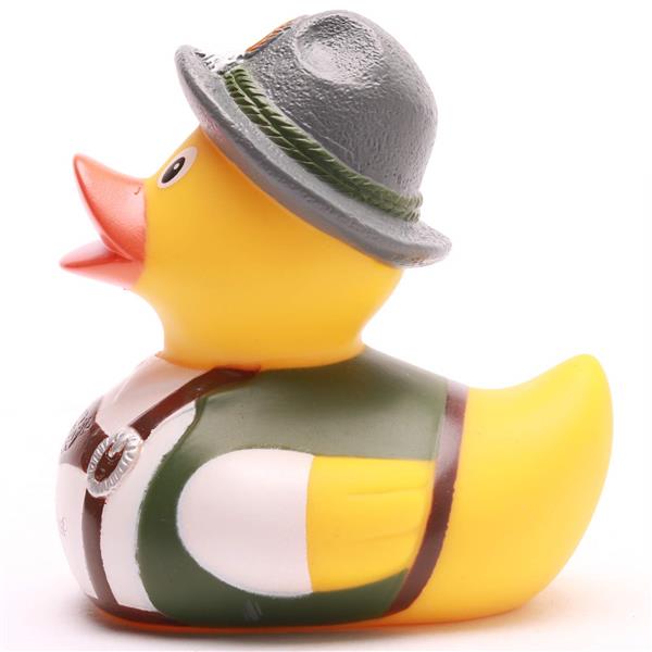O’zapft is! Mit unserer Oktoberfest Badeente „Tracht“ bringst du echtes Wiesn-Feeling in deine Badewanne. Dieses charmante Quietscheentchen ist stilecht in bayrischer Tracht unterwegs – mit grüner Weste, weißen Puffärmeln und passendem Hut inklusive stilvollem Gamsbart-Relief. Auf der Brust prangt stolz der Schriftzug „Oktoberfest“, der jedem Betrachter sofort ein Lächeln ins Gesicht zaubert.