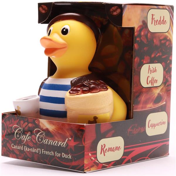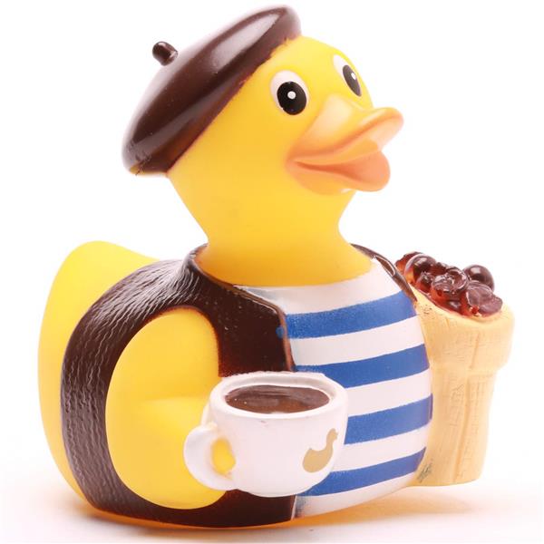 Bonjour, Mesdames et Messieurs! Darf ich vorstellen: unsere charmante Badeente „Café Canard“, direkt aus den Straßencafés von Paris zu dir nach Hause! Diese quakende Kaffee-Koryphäe trägt natürlich den unverkennbaren Look eines echten Pariser Baristas – inklusive gestreiftem Shirt, schickem Béret und einem Sack voll bester Kaffeebohnen. Ihr treuer Begleiter: eine dampfende Tasse Espresso, bereit, dich morgens im Bad wachzuquaken!