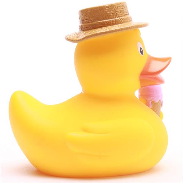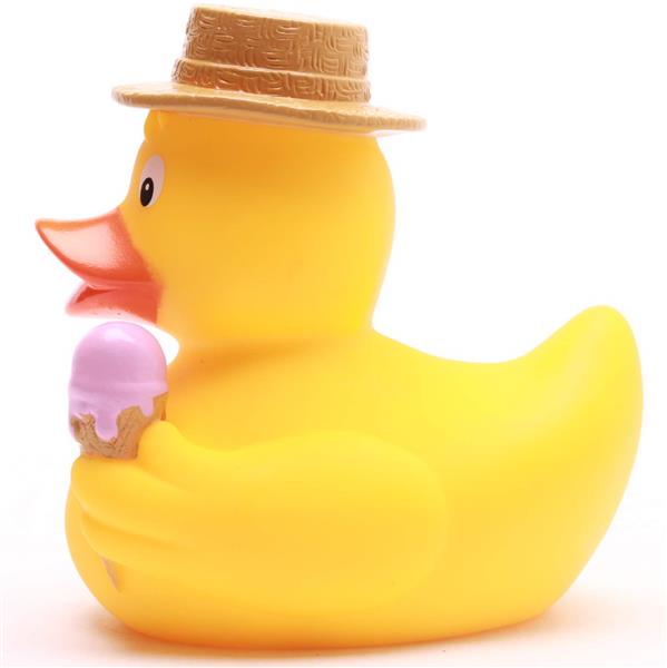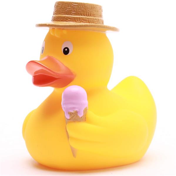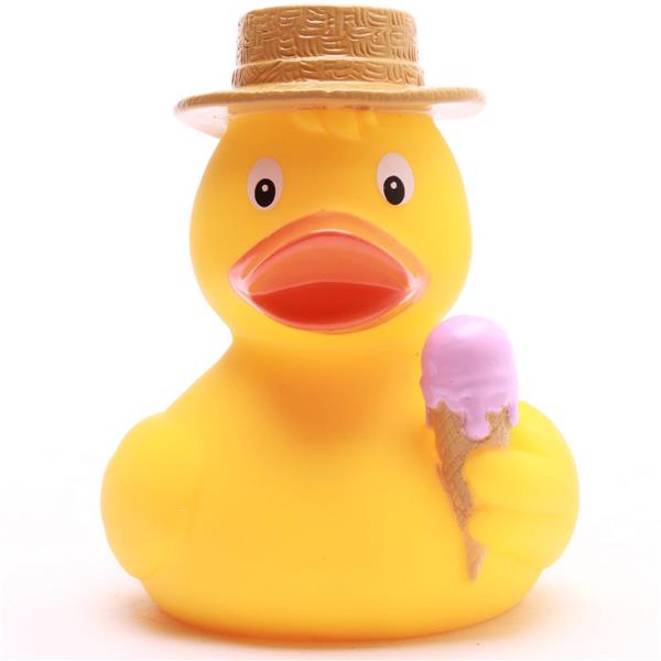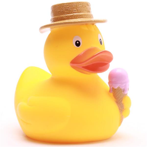Die Sonne scheint, der Sommer ruft, und diese Quietscheente ist voll in ihrem Element! Mit ihrem lässigen Strohhut und dem leckeren Eis in der Hand (oder besser gesagt: im Flügel) ist sie der absolute Star in deinem Badezimmer. Ihre strahlend gelbe Farbe erinnert an die schönsten Sommertage, und der rosa Eisbecher ist einfach zum Dahinschmelzen – wortwörtlich!