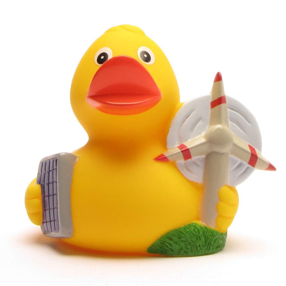 Bitte beachten Sie: Auch wenn die "Energie" Badeente ein Meister der erneuerbaren Energien ist, kann sie leider kein echtes Windrad oder eine echte Photovoltaikanlage ersetzen. Aber sie wird definitiv dabei helfen, die Wichtigkeit dieser Themen in den Vordergrund zu rücken!