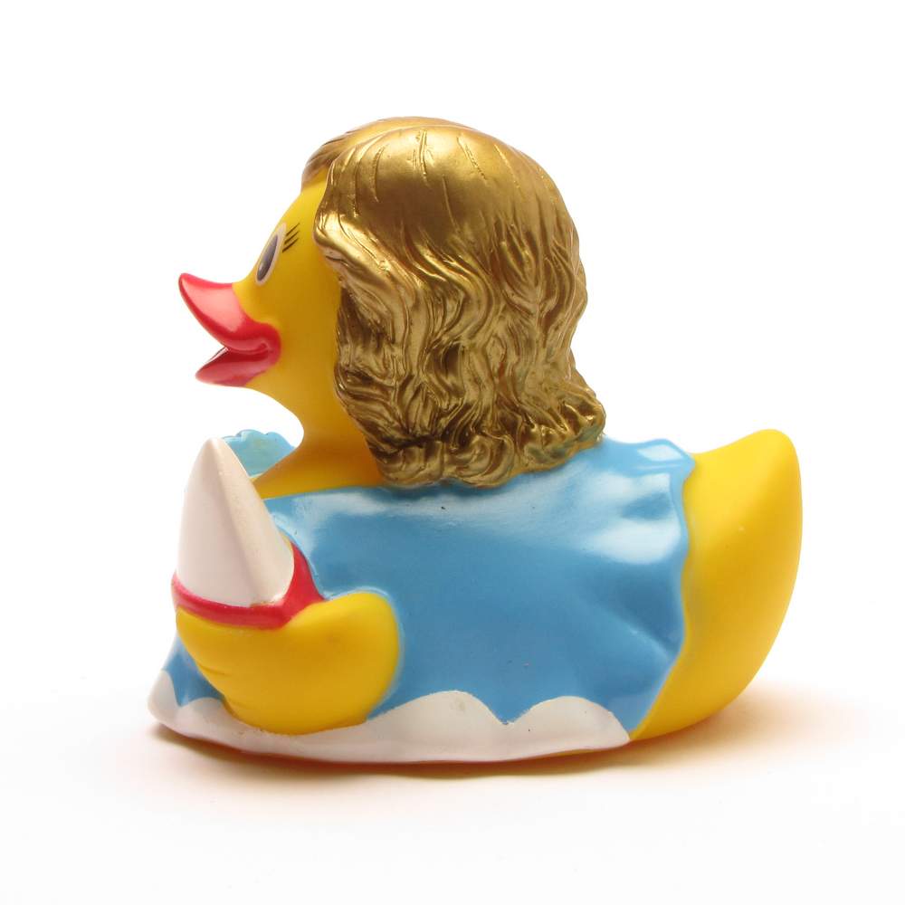 Die Gummiente kommt mit einem süßen Segelboot in der Hand, das Dein Bad in eine maritime Oase verwandelt. Egal, ob Du in der Wanne schippert oder am See chillst, das Quietscheentchen ist immer an Deiner Seite. Mit ihrer coolen Pose ist sie der absolute Hingucker.