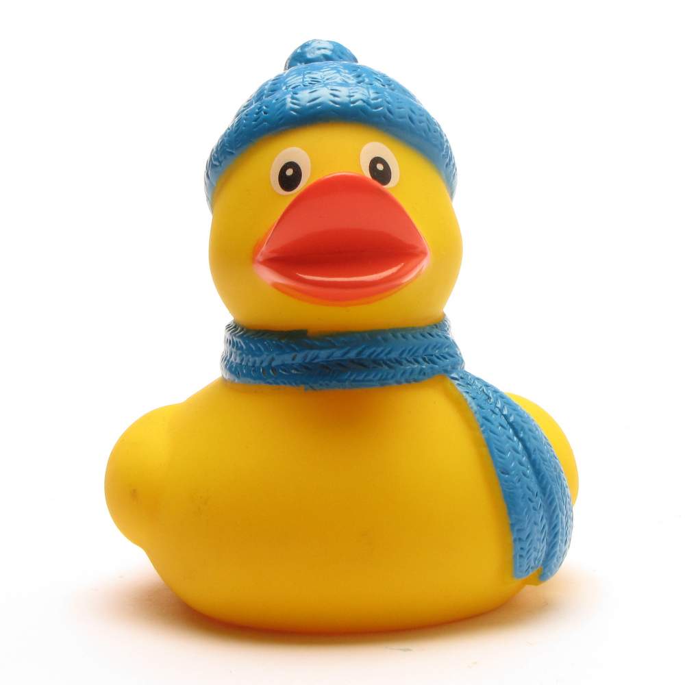 Aus hochwertigem Vinyl gefertigt, präsentiert sich diese bezaubernde Quietscheente in einer blauen Zipfelmütze und einem blauem Schal - sie ist bereit, sich der winterlichen Kälte zu stellen. Sie schmilzt garantiert nicht, egal wie heiß Dein Bad ist! Denn was wäre eine winterliche Badefreude ohne unser charmantes Gummiente?