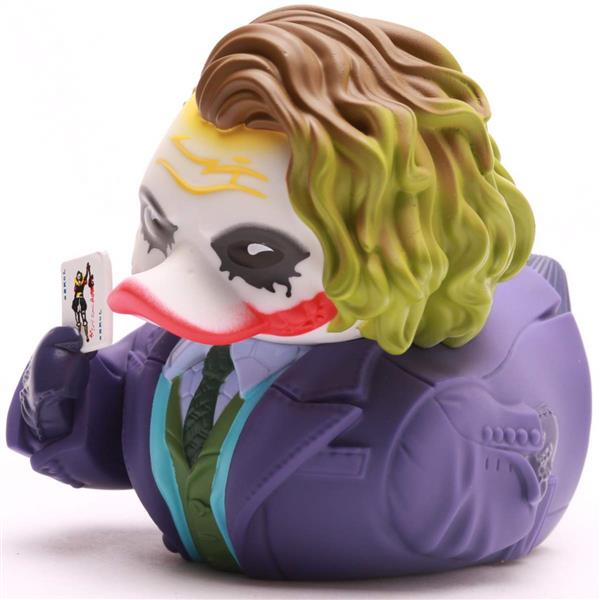 Die Joker Badeente bringt Chaos und Stil ins Badeparadies! Mit ihrem knalligen grünen Haar, markantem Clown-Make-up und der typischen lila Anzugskombi ist sie ein absolutes Highlight für jeden Fan von The Dark Knight. Der Joker hält sein Ass in der Hand – ein Symbol für Unberechenbarkeit und cleveren Witz.