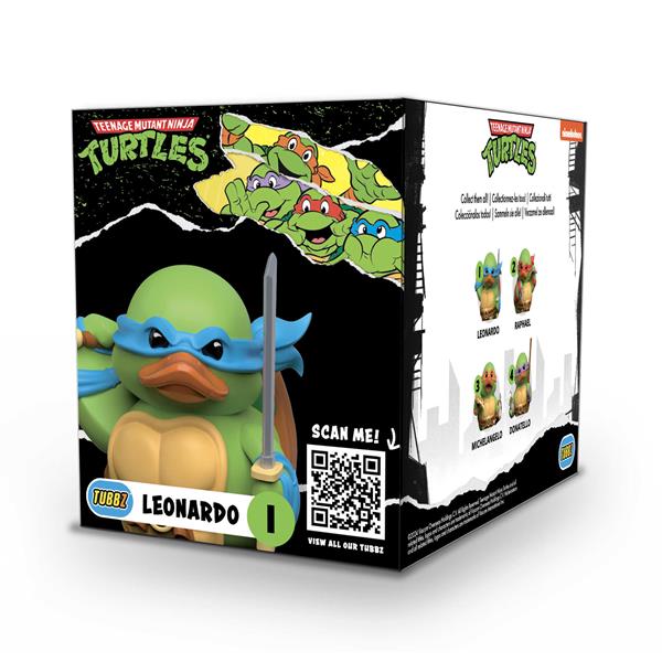 - Eine "Erstausgabe" von TUBBZ. In einer Sammlerbadewanne mit Teenage Mutant Ninja Turtles-Logo, "First Edition"-Aufdruck auf dem Boden der Ente und Aufkleber auf der Verpackung.