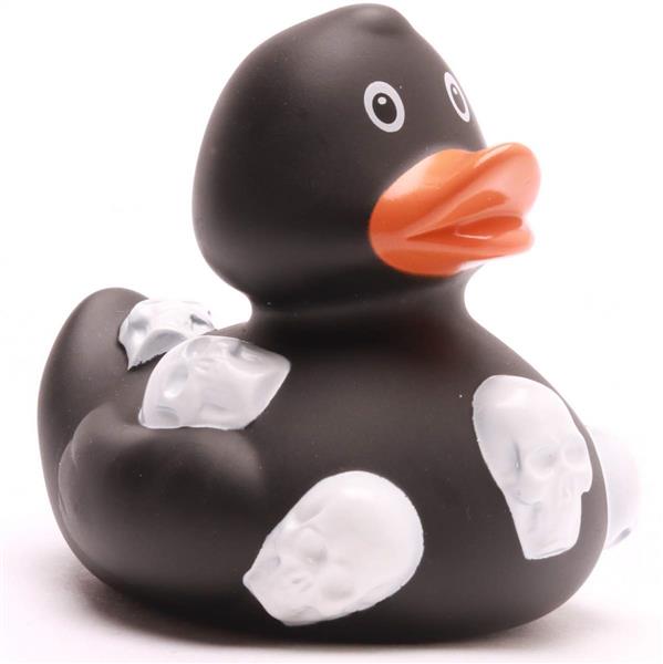 Die liebevoll gestalteten Totenköpfe verleihen der Ente eine mystische Aura, die sowohl Sammler als auch Halloween-Fans begeistern wird. Ob als dekoratives Element für gruselige Events oder einfach als origineller Begleiter im Alltag – diese Badeente macht in jeder Situation eine beeindruckende Figur.