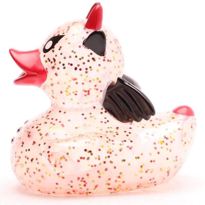 Glitzer Teufel Quietscheente mit schwarzen Flügeln