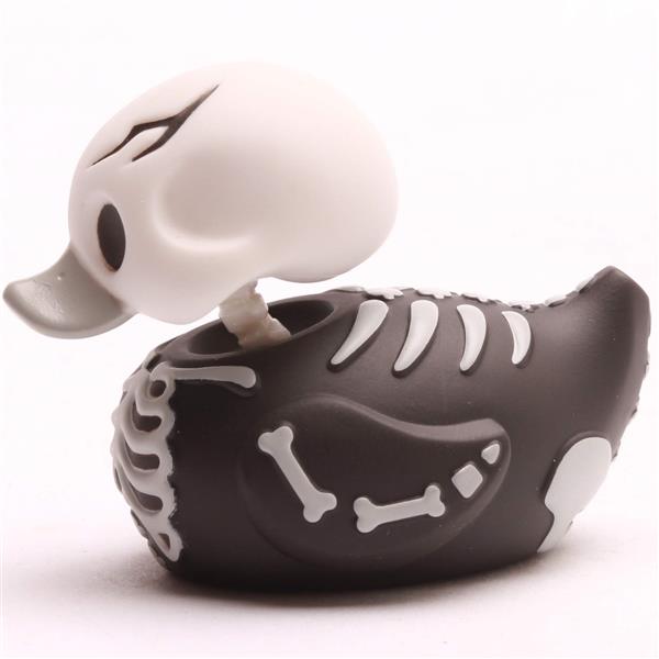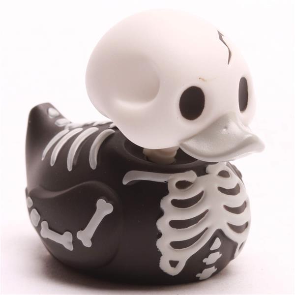 Klein, gruselig und einfach knochenstark: Die Mini Badeente Halloween – Skeleton bringt schaurigen Sammelspaß ins Haus. Mit ihrem schwarzen Körper, aufgemalten Knochen und dem markanten Totenkopf-Look ist dieses Quietscheentchen perfekt für alle, die ein Faible für das Unheimliche haben. Trotz ihrer handlichen Größe steckt in ihr jede Menge Grusel-Charme, der jede Badeenten-Sammlung zum Schaudern – und Schmunzeln – bringt.