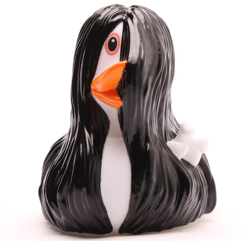 Möchtest du deinem Badeerlebnis einen Hauch von Nervenkitzel hinzufügen? Dann ist diese mystische Badeente genau das Richtige für dich! Dieses nicht so gewöhnliche Quietscheentchen hat das Zeug, jedes Bad in ein mystisches Abenteuer zu verwandeln. Mit ihrem weißen Körper, dem langen pechschwarzen Haar und den rotunterlaufenen Augen erinnert sie an die gruseligsten Szenen deiner Lieblingshorrorfilme. Und wenn du genau hinhörst, könntest du sogar ihr leises Quietschen hören, das in der Dunkelheit widerhallt. Aber keine Sorge, sie wird immer noch für das typische Badeenten-Spaß sorgen, den wir alle kennen und lieben.