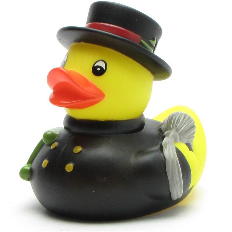 Gefertigt aus hochwertigem Vinyl und in liebevoller Detailarbeit gestaltet, überzeugt unsere Badeente als Schornsteinfeger in klassischer Uniform. Sie hat sogar eine kleine Leiter unterm Arm und trägt stolz ihren schwarzen Zylinderhut. Mit dieser Quietscheente schwappt das Glück über die Badewannenränder hinaus.