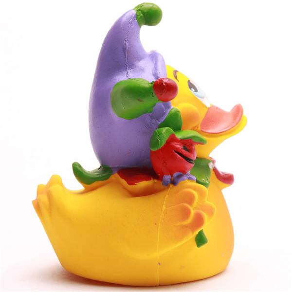 Diese Badeente bringt ordentlich Spaß in die Wanne – und das im wahrsten Sinne des Wortes! Die Harlekin Badeente ist der bunte Narr unter den Quietscheentchen und sorgt mit ihrem fröhlich-verschmitzten Blick garantiert für gute Laune. Mit ihrer auffälligen Narrenkappe in Lila, Grün und Rot sowie dem frechen Mini-Zepter in der Hand ist sie der heimliche Star in jedem Badezimmertheater.