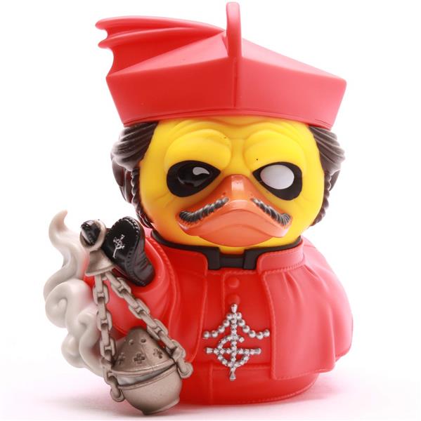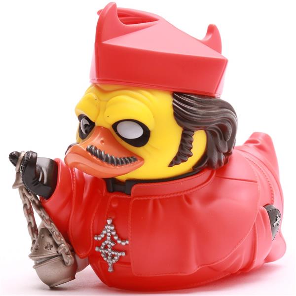Erhebet euch, ihr Jünger des Rock'n'Rolls – denn der Kardinal ist unter uns. Mit dieser außergewöhnlichen Badeente kommt kein Geringerer als Cardinal Copia aus der okkulten Bühnenwelt der Band Ghost direkt in deine Wanne. Natürlich stilecht in knallroter Robe, mit schwarzem Handschuh, kultigem Bart und geheimnisvollem Blick – bereit, deine Sammlung zu segnen… oder zu verfluchen.