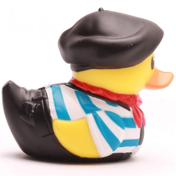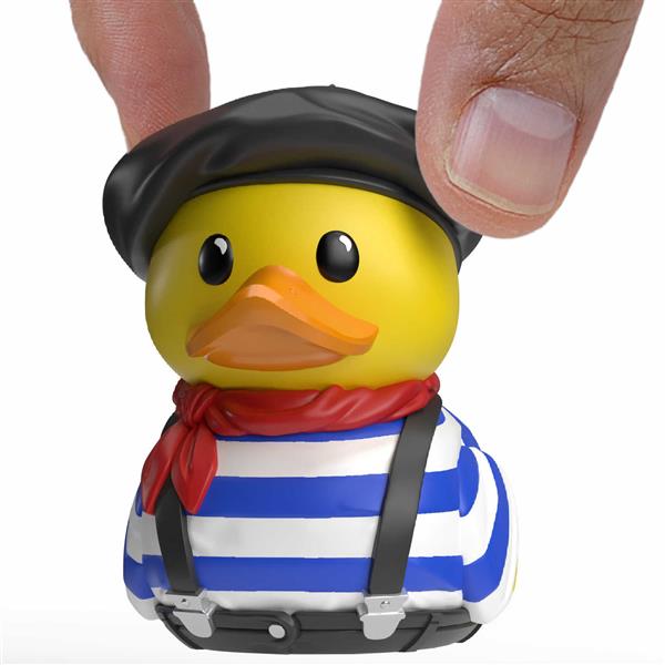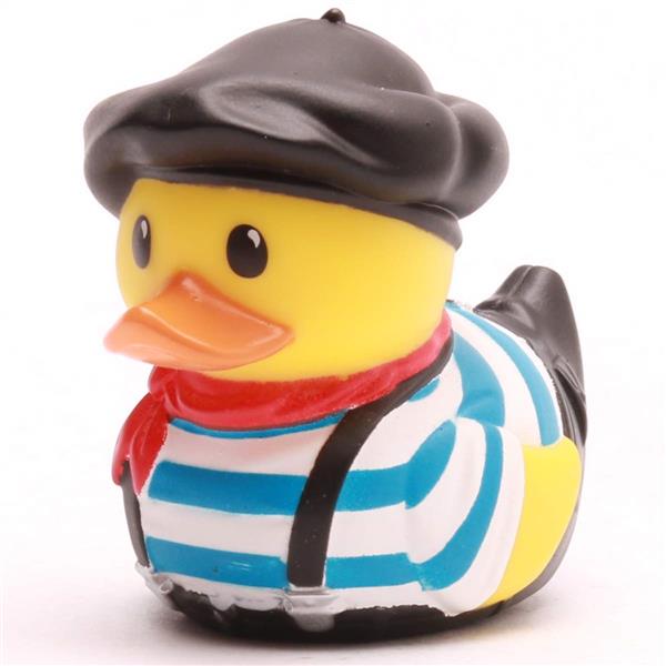 Diese Mini-Badeente kommt direkt aus dem Herzen Frankreichs und bringt mehr Stil mit als ein Pariser Laufsteg. Mit schwarzem Baskenhut, rotem Halstuch und klassischem Streifenhemd sieht sie aus wie frisch aus dem Bistro entlaufen. Ob sie nun heimlich Baguette nascht oder über Kunst philosophiert – diese Ente hat einfach das gewisse Etwas.