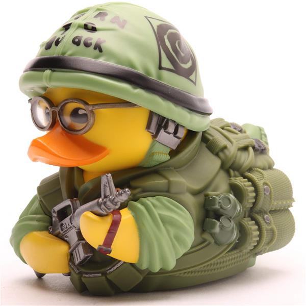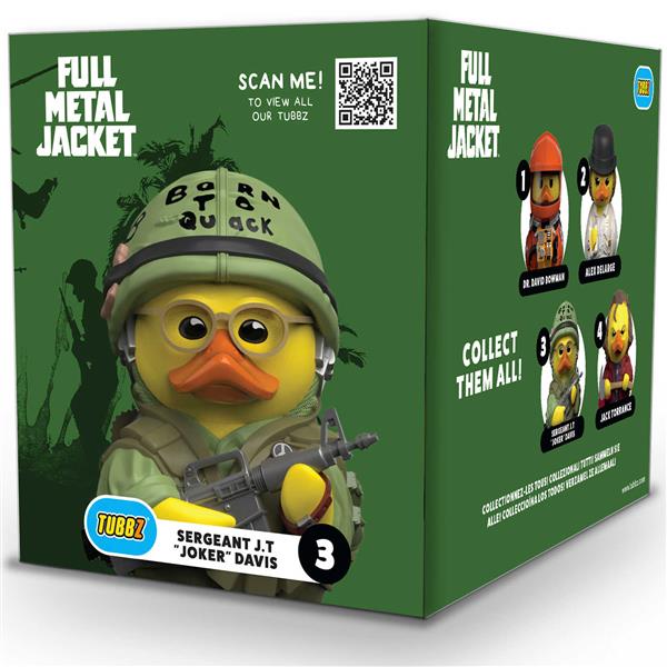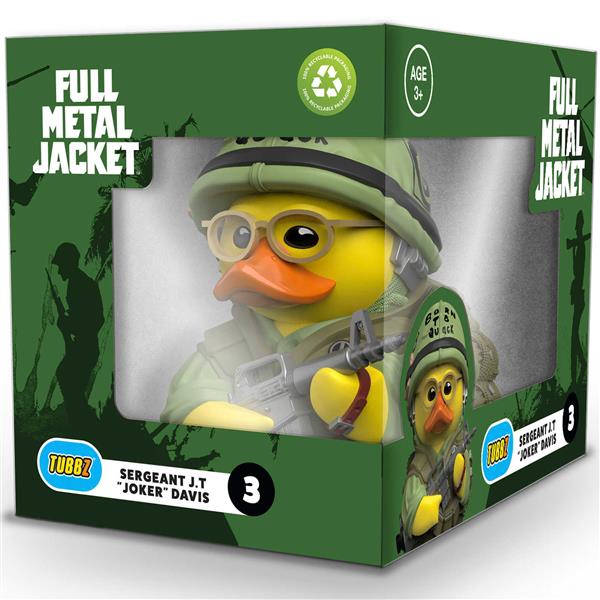 Wenn du dachtest, Quietscheenten wären nur was für die Badewanne, dann hat Sergeant J.T. "Joker" Davis eine Mission für dich. Diese Badeente bringt die volle Ladung Filmgeschichte in dein Regal. Als ikonische Figur aus dem Klassiker „Full Metal Jacket“ kommt Joker jetzt als exklusive Quietscheente im TUBBZ-Design – komplett mit Helm, Schutzweste und der berühmten Aufschrift „Born to Quack“. Ein echter Hingucker, der nicht nur im Ententeich, sondern auch bei Sammlern für Respekt sorgt.