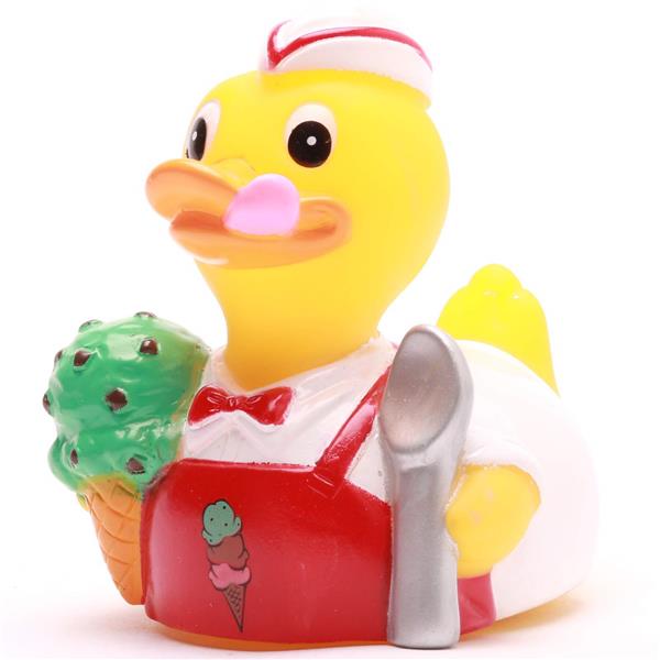 Die Badeente „Chip – der Eisverkäufer“ bringt dir sommerlichen Genuss direkt in die Badewanne! Mit ihrer frechen Zunge, die schon genüsslich am cremigen Minz-Schokoladen-Eis schleckt, und der knallroten Schürze mit Eiswaffel-Design, wird sie sofort zum Star in deinem Badezimmer. Der silberne Löffel in der Hand macht klar: Hier wird Eis mit Stil serviert!