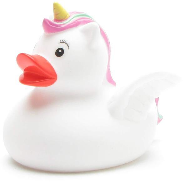 Du suchst das perfekte Geschenk für einen besonderen Menschen? Wir präsentieren: die Einhorn Badeente! Unser niedliches Quietscheentchen ist nicht nur eine normale Gummiente - nein, es ist ein magisches Einhorn! Mit schneeweißen Flügeln und einem leuchtenden regenbogenfarbenen Schweif, sorgt es für Spaß in der Badewanne.