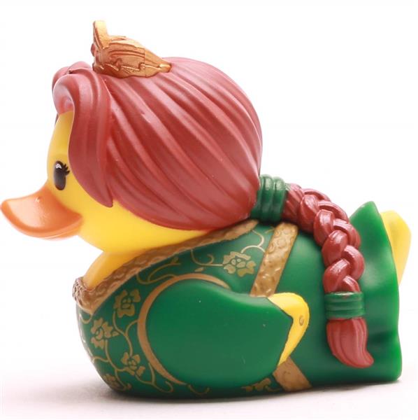 Elegant, mutig und einfach märchenhaft – die Mini Badeente Shrek – Prinzessin Fiona bringt königlichen Glanz ins Badeentenreich! Mit ihrem smaragdgrünen Kleid, der kunstvollen Flechtfrisur und der goldenen Krone zeigt Fiona, dass wahre Stärke auch im Mini-Format groß rauskommt.