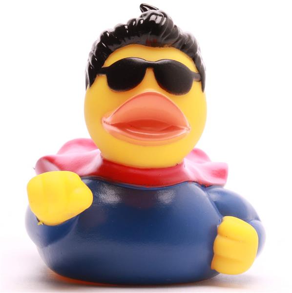 Die Badeente im Superhelden-Look bringt Heldenmut und Spaß in jedes Badezimmer! Mit ihrem markanten blauen Anzug, dem leuchtend roten Umhang und der stylischen Sonnenbrille ist diese Ente ein echtes Statement für alle Fans von Superhelden. Sie vereint kraftvolle Optik mit einem humorvollen Augenzwinkern und ist bereit, das Bad vor Langeweile zu retten.