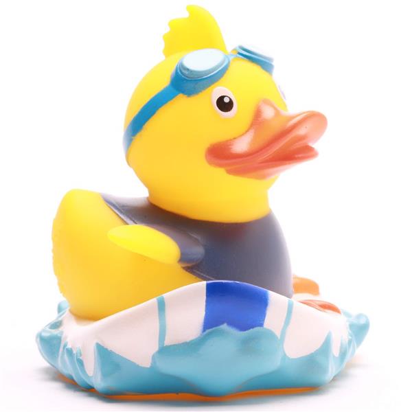 Diese Badeente hat eindeutig das Surfbrett fest im Griff und ist bereit für die nächste Welle – egal ob im Meer, im Pool oder in der Badewanne. Als Quietscheente mit echter Beach-Attitude bringt sie sofort Urlaubsstimmung ins Badezimmer. Mit cooler Schwimmbrille, Neopren-Look und einem Surfbrett, das souverän über die Schaumkronen gleitet, zeigt dieses Quietscheentchen, wie entspannt Wassersport aussehen kann.