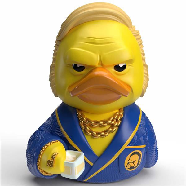 Zurück in die Zukunft? Eher direkt ins Schaumbad! Mit der Mini Badeente Biff Tannen hält der legendärste Fiesling aus Hill Valley Einzug in deine Sammlung. Im goldblauen Bademantel, mit schwerer Goldkette und finsterem Blick zeigt dieses Quietscheentchen, dass Macht, Geld und Arroganz auch in Entenform perfekt zusammenpassen.
