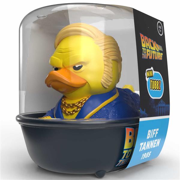 Die Mini TUBBZ Edition bringt Biff in halber Größe, aber mit vollem Charakter – frech, detailverliebt und unverwechselbar. Verpackt in einer kleinen Badewanne mit offiziellem Back to the Future-Logo, ist sie ein echtes Highlight für Filmfans und Sammler.