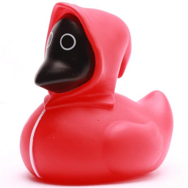 Die Badeente Art Game - Alpha bringt Spannung und Stil direkt in dein Badezimmer! Inspiriert von der ikonischen Ästhetik eines packenden Wettkampfs, sorgt diese Ente mit ihrer leuchtend roten Kapuze und der geheimnisvollen schwarzen Maske mit den markanten runden Symbolen für den ultimativen Hingucker. Ein minimalistisches Design, das Neugier weckt und gleichzeitig einen Hauch von Popkultur verströmt.