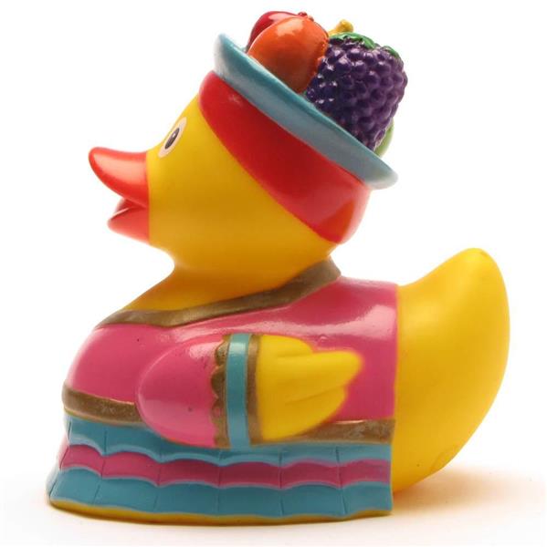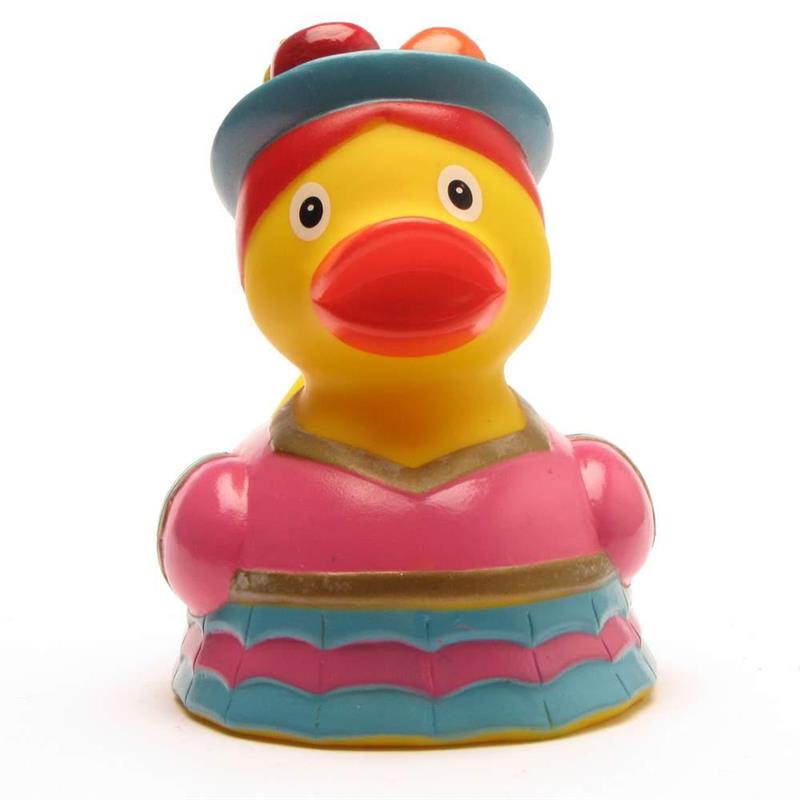 Du denkst, Du hast schon alles gesehen? Falsch gedacht! Stell Dir vor, Du liegst entspannt in der Wanne und Dein Badewasser wird plötzlich zur Bühne für das schillerndste Quietscheentchen aller Zeiten. Diese Gummiente trägt nicht nur einen Früchtehut aus bunten Obst auf dem Kopf, sondern schwingt sich auch in einem schicken pinken Kleid in die Wellen.