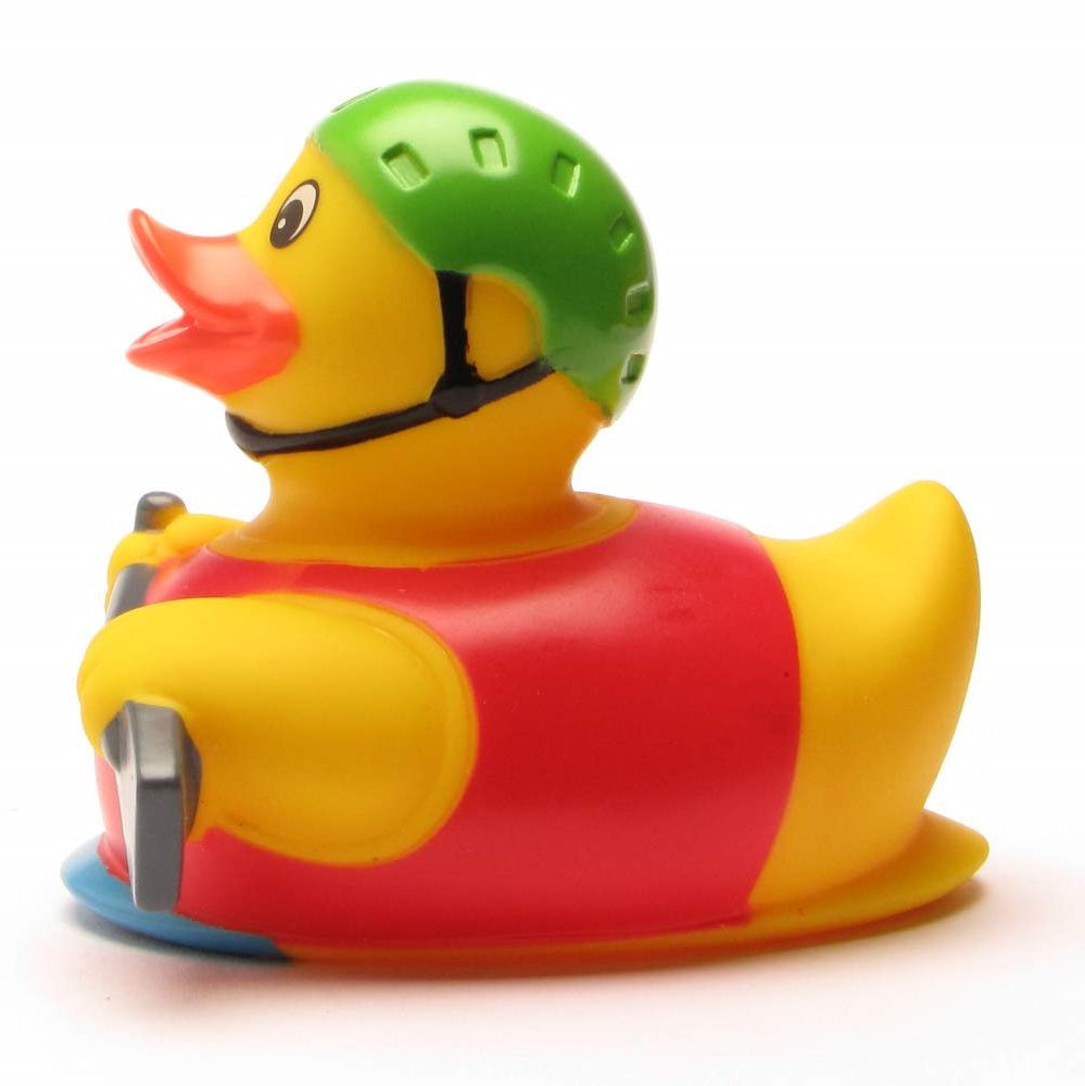 Mach dich bereit für unser neuestes Angebot: die Ruderboot Ente! Diese nicht so gewöhnliche Quietscheente strahlt mit ihrem roten T-Shirt und grünen Helm eine Freude aus, die jeden in gute Laune versetzt. Ganz zu schweigen von ihrem nifty kleinen Ruder, das sie immer in der Hand hält. Sie ist eine Liebeserklärung an alle Kayakfahrer da draußen!