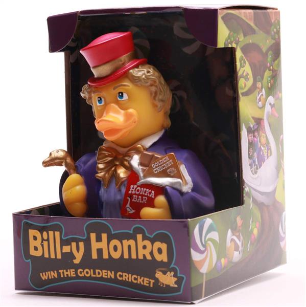Willkommen in der süßesten Entenfabrik der Welt: Bill-y Honka! Diese Badeente ist einfach zum Anbeißen – natürlich nur im übertragenen Sinne. Im extravaganten Outfit mit lilafarbenem Mantel, goldenem Spazierstock und legendärer „Honka Bar“ samt Golden-Cricket-Ticket ist Bill-y Honka der Star jeder Badezimmersammlung.