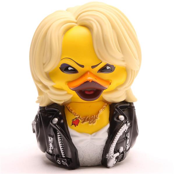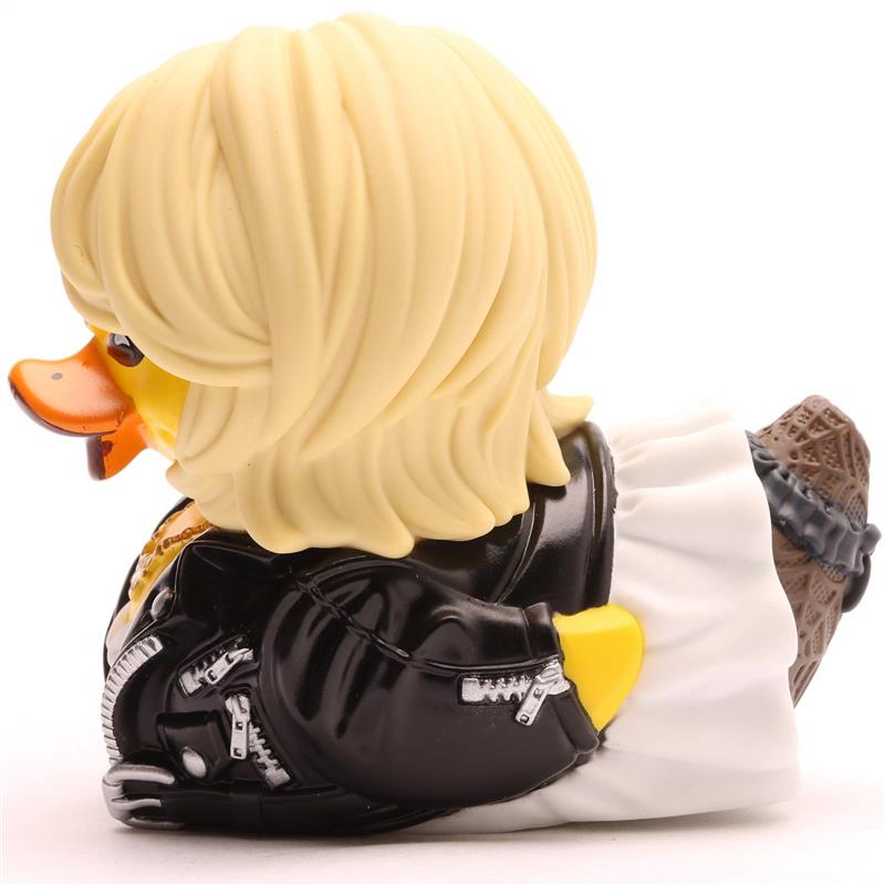Die Badeente Chucky – Tiffany aus Bride of Chucky ist ein echtes Highlight für alle Horrorfans mit Sinn für Glamour. Diese Quietscheente verkörpert Tiffany in ihrer legendären Kombination aus Hochzeitskleid und schwarzer Lederjacke – eine perfekte Mischung aus Braut und Bad Girl. Dazu kommt ihr charakteristisches Make-up, der freche Blick und natürlich die auffällige Halskette, die sofort verrät, dass man es hier nicht mit einer gewöhnlichen Ente zu tun hat.