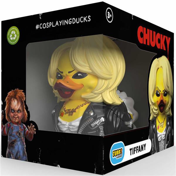Offiziell lizenziert und detailverliebt umgesetzt, bringt diese Badeente den kultigen Charme der Horror-Ikone direkt in die Badewanne oder ins Regal. Sie ist Teil der beliebten TUBBZ-Kollektion, die sich durch ihre witzige Mischung aus Sammelfigur und Quietscheentchen auszeichnet. Ob als originelles Geschenk für Fans der Chucky-Filme oder als Sammlerstück für alle, die außergewöhnliche Badeenten lieben – Tiffany sorgt garantiert für Aufsehen.