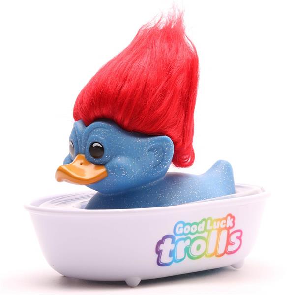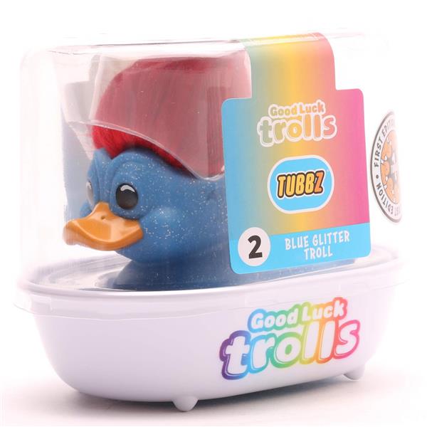 - Eine "Erstausgabe" des TUBBZ. Wird in einer Sammlerwanne geliefert, mit Good Luck Trolls-Logo, "First Edition"-Aufdruck auf dem Boden der Ente und Aufkleber auf der Verpackung.