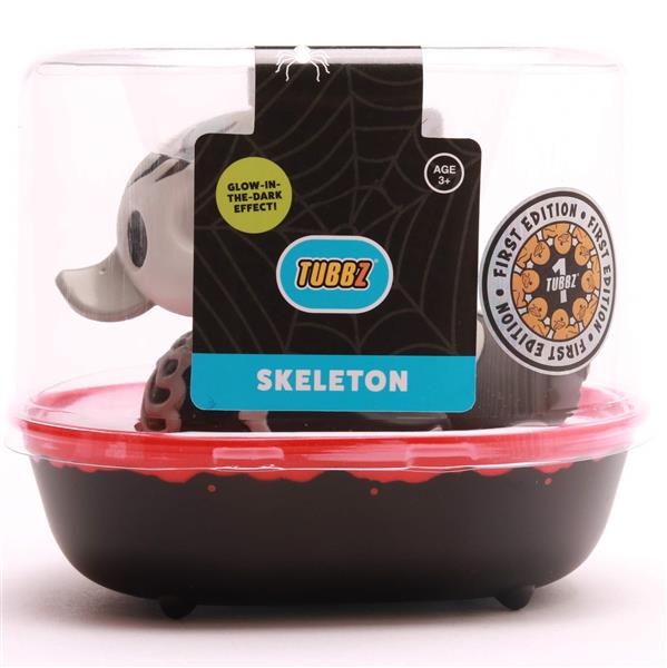 Wer braucht schon Fleisch, wenn er mit Knochen so viel Eindruck macht? Diese Skeleton TUBBZ First Edition ist eine makabre Schönheit, die mit sichtbaren Rippen, Wirbelsäule und Halswirbeln eine herrlich schaurige Note ins Regal bringt. Mit hohlen Augen, detailreicher Gestaltung und einer guten Portion untotem Charme ist sie ein Muss für Horror-Fans, Sammler düsterer Schätze und alle, die ihre Badeenten am liebsten knochentrocken mögen. Verpackt in der markentypischen Sammlerwanne mit Base-Print und Sticker ist sie Teil der streng limitierten First Edition – und wenn sie einmal verschwunden ist, bleibt nur noch das Echo ihres gespenstischen Quakens.