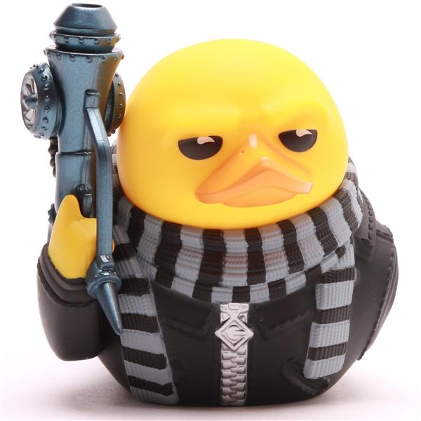 Hier kommt der ultimative Bösewicht im Badeenten-Format: die Minions Badeente Gru. Mit seinem typischen finsteren Blick, der schwarzen Lederjacke und dem markanten Schal sieht dieses Quietscheentchen genauso aus wie der Meister der Schurken selbst. Sogar die unvermeidliche Hightech-Waffe hat er dabei – schließlich weiß man nie, wann das nächste Chaos ausbricht, ob im Wohnzimmer oder in der Badewanne.