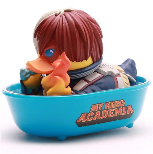 Diese Badeente ist heiß und cool zugleich – wortwörtlich! Die Quietscheente Shoto Todoroki bringt Superheldenpower direkt in deine Badewanne. Mit seiner legendären Frisur in Eis und Feuer und dem entschlossenen Blick ist dieses Quietscheentchen ein echtes Highlight für alle Fans von My Hero Academia. Ob du gerade deine Badewanne vor Superschurken beschützen musst oder einfach nur entspannen willst – Shoto steht dir mit eiskaltem Verstand und feuriger Entschlossenheit zur Seite.