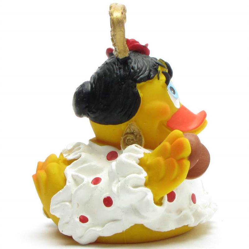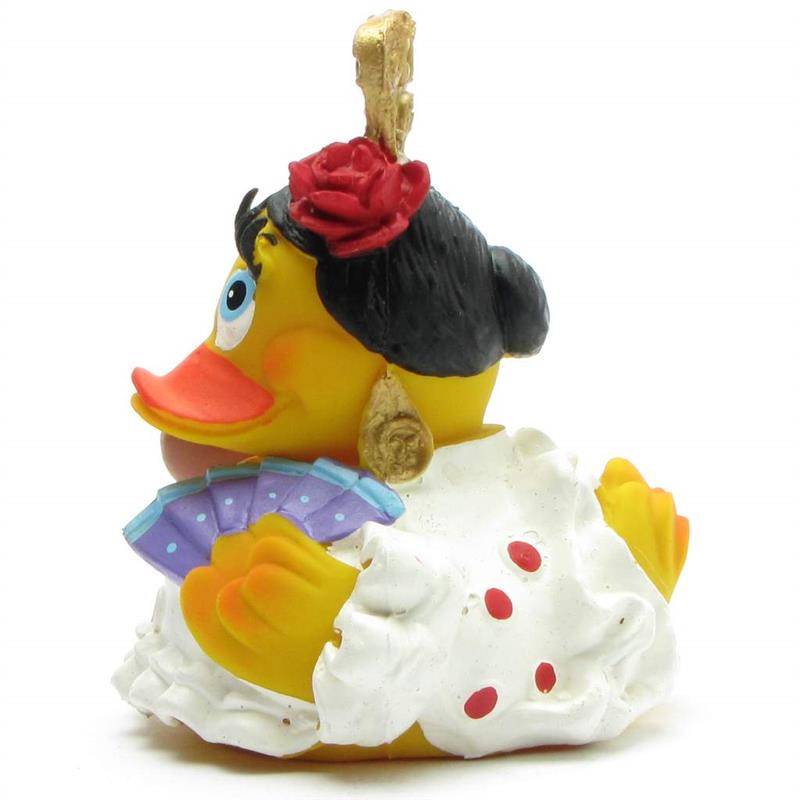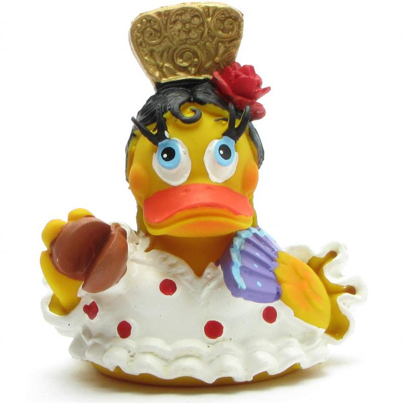 Hey Du! Ja genau, Du! Lass mich Dir die ultimative Badeente vorstellen, die nicht nur schwimmt, sondern den Flamenco tanzt! Unsere Flamenco Ente kommt im schicken weißen Kleid und hält einen eleganten blauen Fächer in der Hand. Ein echter Hingucker und ein tolles Geschenk für alle Quietscheentchen-Liebhaber.