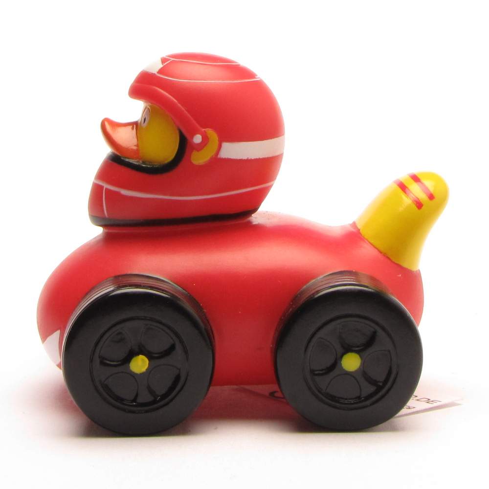 Hast du schon mal eine Quietscheente im Formel 1-Rennauto gesehen? Jetzt ist es möglich! Triff unser neues Geschenk-Highlight: die Rennfahrer Ente. Sie liebt Geschwindigkeit, den Rausch des Windes und natürlich Quitschen! Im roten Helm und flammenden roten Rennauto ist sie die neue Michael Schumacher unter den Badeenten. Jede Kurve im Wasser wird zu einem Adrenalinrausch und lässt das Herz jedes kleinen und großen Rennfans höherschlagen.
