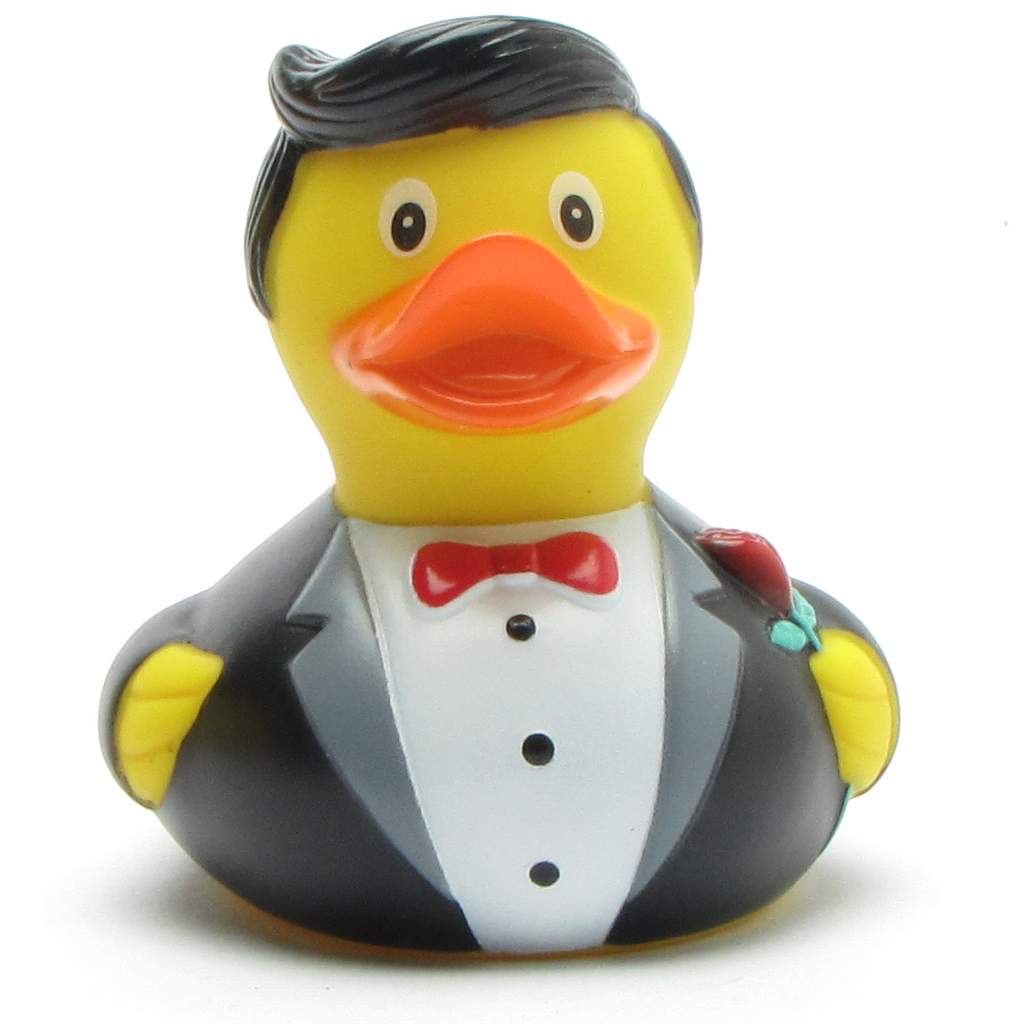Die Bachelor-Badeente - mit einer Rose.Preise für größere Mengen auf Anfrage