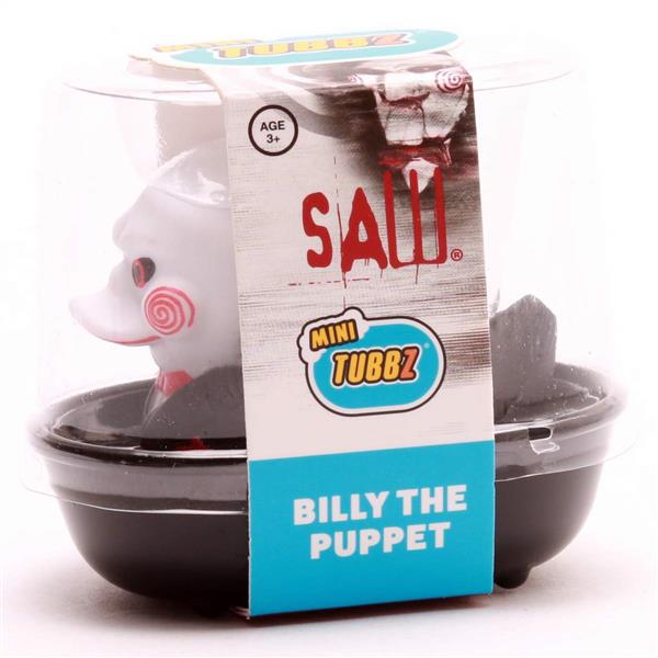 Billy the Puppet ist zurück. Kleiner, aber nicht weniger gruselig. Diese Mini-TUBBZ bringt den ikonischen SAW-Schrecken direkt ins Badezimmer – im schicken schwarzen Anzug, mit roter Fliege und den berüchtigten Spiralwangen. Nur statt Dreirad kommt Billy jetzt mit Badewanne – und das macht ihn nicht unbedingt harmloser.