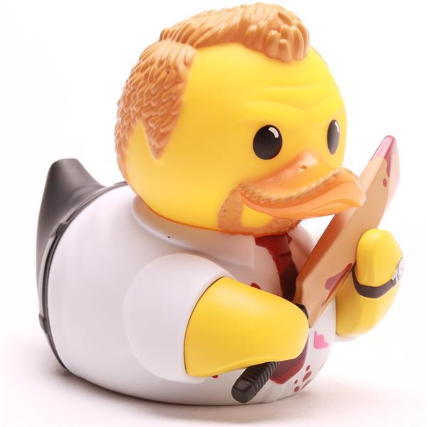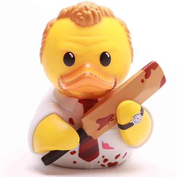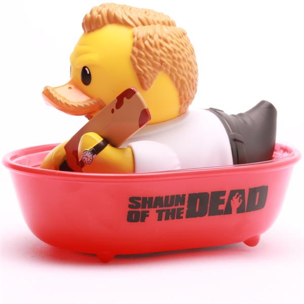 Die Badeente Shaun aus Shaun of the Dead ist bereit, die Badewanne vor der Zombie-Apokalypse zu retten. Mit seinem treuen, aber inzwischen ziemlich blutverschmierten Cricketschläger zeigt er, dass selbst in den schwierigsten Zeiten ein bisschen britischer Humor nicht fehlen darf. Shaun, in seiner ikonischen weißen Hemd-Krawatten-Kombi, hat offensichtlich einen langen Tag hinter sich – aber hey, wer hätte das nicht nach einem Zombieangriff?