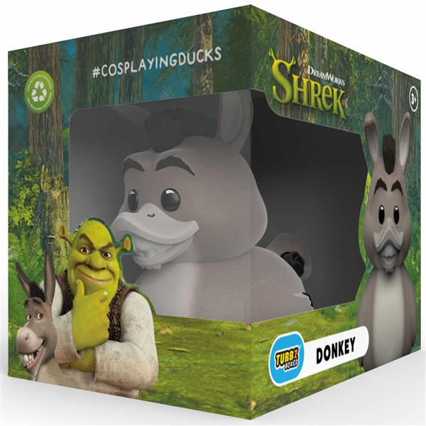 Diese offiziell lizenzierte Quietscheente aus der beliebten TUBBZ-Reihe ist eine liebevoll gestaltete Hommage an Shreks unermüdlichen Begleiter. Das weiche Grau, die strukturierten Details und der markante Ausdruck machen sie zu einem echten Highlight für Fans und Sammler.