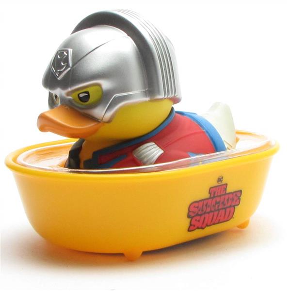 Tauche ein in die fantastische Welt des Suicide Squad mit der Peacemaker Badeente. Quietscheentchen war gestern – heute ist Peacemaker Zeit! Christopher Smith alias Peacemaker, der gewalttätige Extremist mit seinem seltsam geformten Chromhelm, begleitet Dich jetzt auch in Deiner Badewanne. Glaubst Du an Frieden um jeden Preis? Egal, wie viele Gummienten Du auf dem Weg dahin zerquetschen musst? Dann ist dieses Sammlerstück genau das Richtige für Dich!