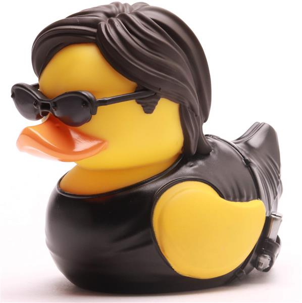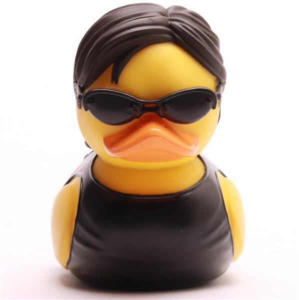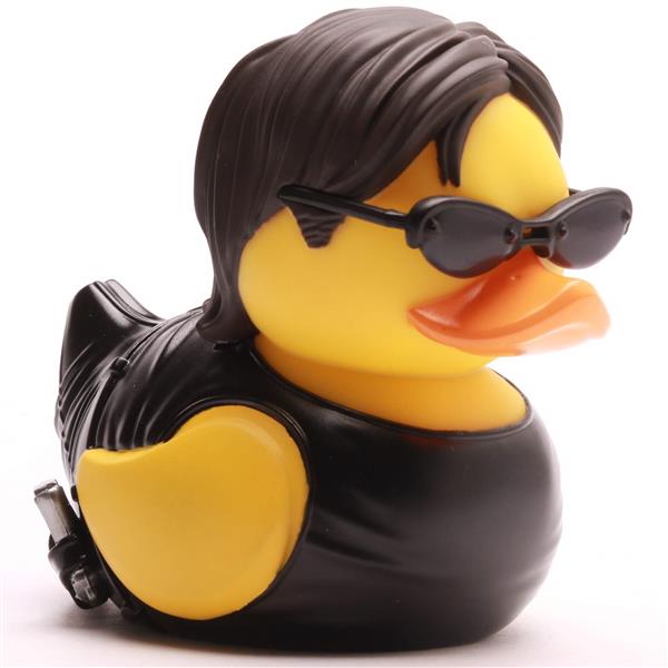 Stylisch, cool und jederzeit kampfbereit – Trinity betritt die Welt der Badeenten! In glänzendem schwarzen Outfit, mit strengem Blick hinter ihrer ikonischen Sonnenbrille, bringt dieses Quietscheentchen die Powerfrau der Matrix direkt in deine Sammlung. Schon beim ersten Anblick wird klar: Diese Ente folgt keinen Regeln, sie macht ihre eigenen.