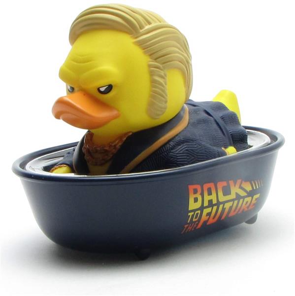 Kennen Sie den Moment, wenn Sie denken, Sie hätten schon alles gesehen? Dann taucht plötzlich dieses einmalige Geschenk auf: Die Badeente im Biff Tannen-Stil! Der große, aggressive und dümmliche Rüpel Biff Tannen aus "Zurück in die Zukunft" hat das Jahr 2015 erreicht. Und was macht er? Richtig, Autos wachsen. Aber in seiner Freizeit verwandelt er sich in dieses entzückende Quietscheentchen, das in keiner Badewanne fehlen sollte.
