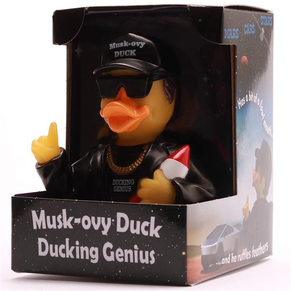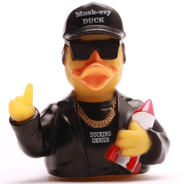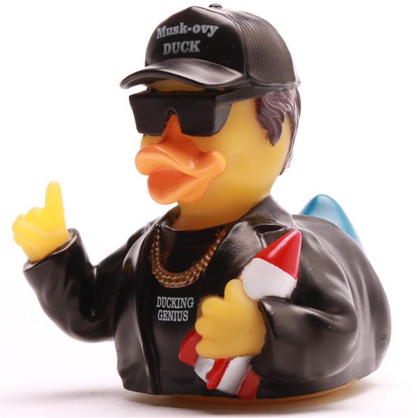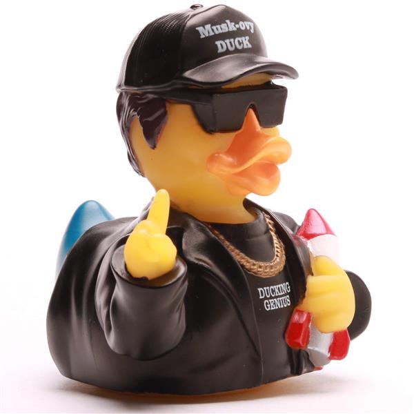 Hier kommt die wohl visionärste Badeente aller Zeiten: die Elon Musk Badeente. Mit cooler Sonnenbrille, Goldkette und Basecap mit der Aufschrift „Musk-ovy Duck“ macht dieses Quietscheentchen sofort klar, dass es nicht nur zum Planschen da ist, sondern auch für große Träume im Bad. In der einen Flügelhand hält die Ente stolz eine kleine Rakete, bereit für den nächsten Flug ins Badezimmer-Universum. Auf dem Shirt prangt „Ducking Genius“ – und genau das trifft es: eine Quietscheente, die nicht nur lustig aussieht, sondern auch noch jede Menge Gesprächsstoff liefert.