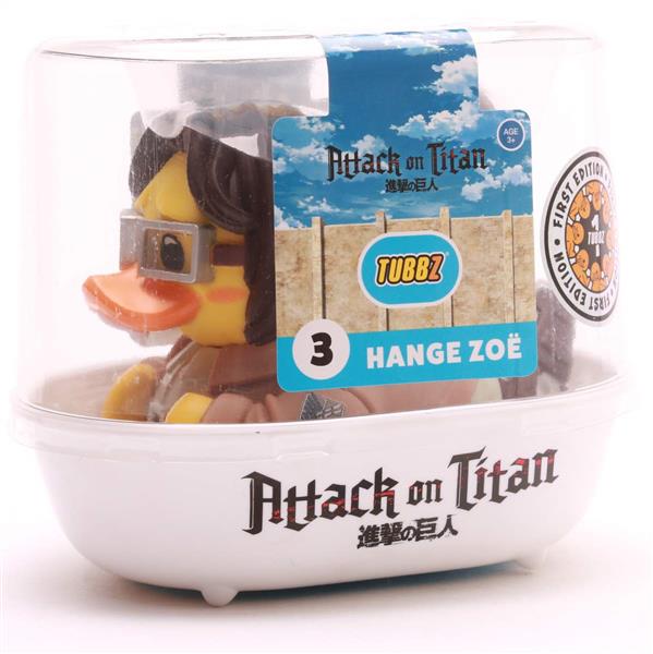 Es ist offiziell: Die coolste Titanenforscherin aller Zeiten wurde in eine Quietscheente verwandelt – und das Ergebnis ist herrlich exzentrisch! Diese First Edition TUBBZ-Badeente zeigt die beliebte Hange Zoë aus Attack on Titan, komplett mit Scout-Regiment-Uniform, typischer Brille und einer gehörigen Portion Neugierde. Hange ist hier, um dein Badezimmer (oder deine Sammler-Vitrine) ordentlich aufzumischen!