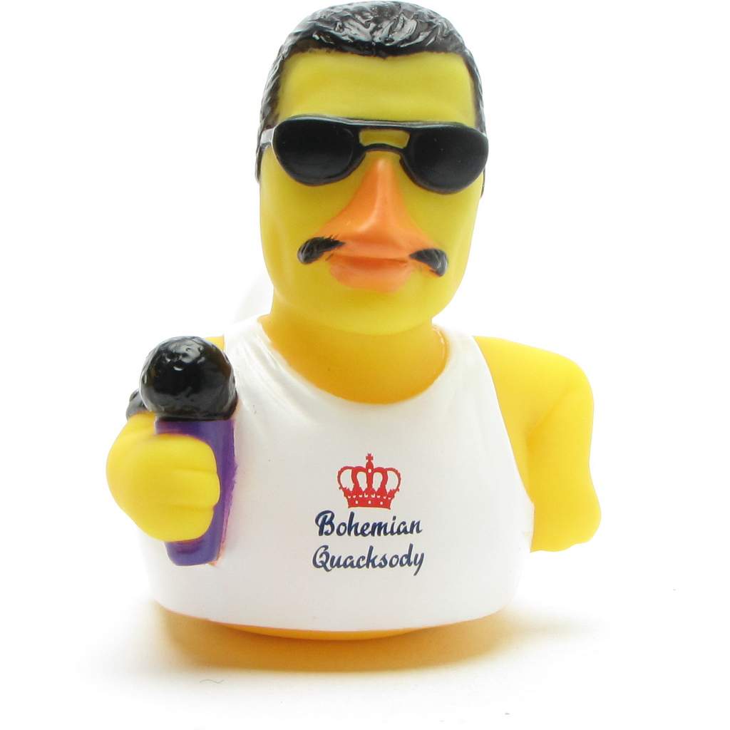 Erlebe das ultimative Badevergnügen mit der Bohemian Quacksody Badeente! Diese einzigartige Quietscheente, inspiriert von der legendären Musikikone Freddie Mercury, bringt Rock'n'Roll direkt in dein Badezimmer. Mit seinem ikonischen Schnurrbart, der schwarzen Sonnenbrille und dem charakteristischen weißen Tanktop mit der Aufschrift "Bohemian Quacksody" ist diese Badeente ein Muss für jeden Queen-Fan.