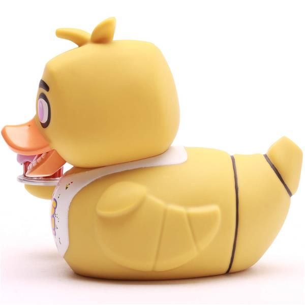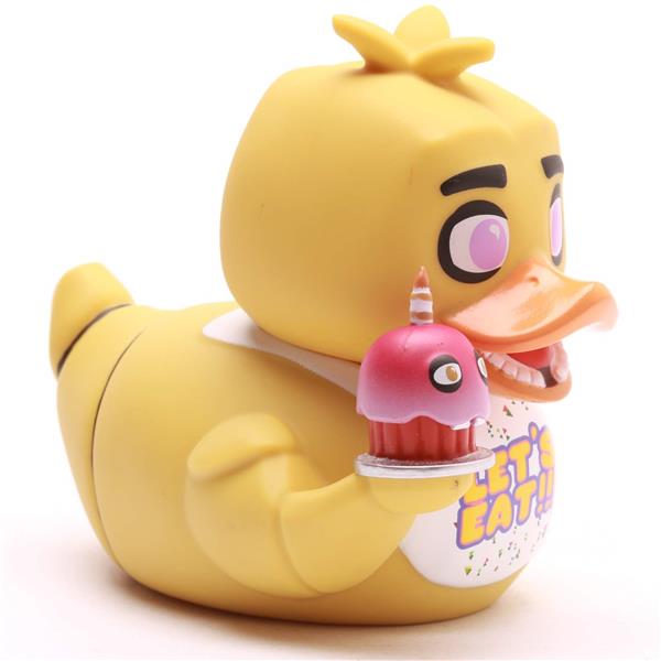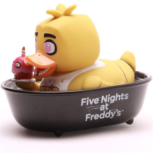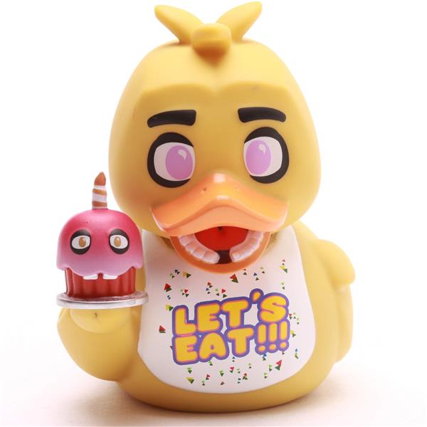 Sammle sie alle! Chica ist Teil der offiziellen Five Nights at Freddy's-TUBBZ-Kollektion. Egal, ob du Angst im Dunkeln hast oder einfach nur ein Fan von coolen Badeenten bist – mit Chica paddelt der FNAF-Spirit direkt in dein Badezimmer.