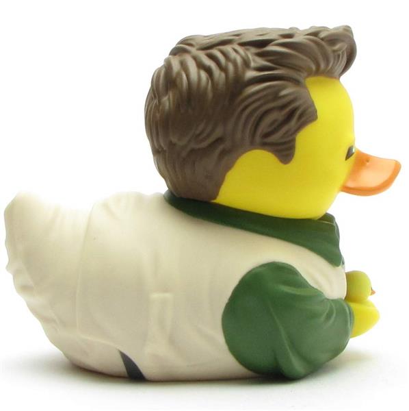 Wer hätte gedacht, dass Chandler Bing eines Tages zum Entchen wird? Mit seiner kultigen Frisur, seinem verschmitzten Lächeln und einer Mini-Ente in der Hand bringt diese Badeente nicht nur "Friends"-Fans zum Schmunzeln, sondern verleiht jedem Badezimmer den ultimativen Sitcom-Flair! Ob er wohl schon einen seiner legendären Sprüche für seine neue Rolle als Quietscheentchen vorbereitet hat? "Könnte ich noch süßer QUIETSCHEN?"