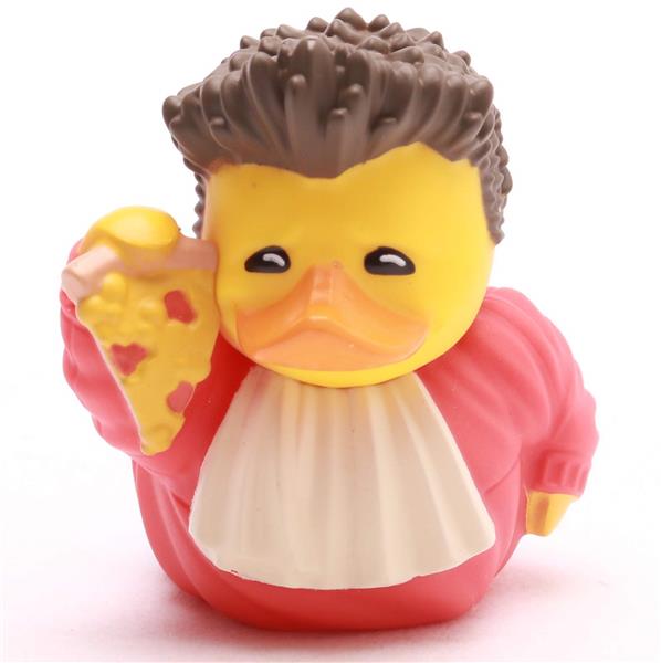 Joey Tribbiani, der charismatische und liebenswerte Schauspieler aus der Kultserie "Friends", hat jetzt seine eigene Mini TUBBZ Badeente! Fans der Serie werden sofort erkennen, wie Joey in seiner typischen, unbeschwerten Art ein riesiges Stück Pizza in den Händen hält, das fast so groß ist wie er selbst. Das liegt daran, dass dieser Joey eine Miniaturausgabe ist – nur 6 cm groß, aber dennoch voller Charakter.