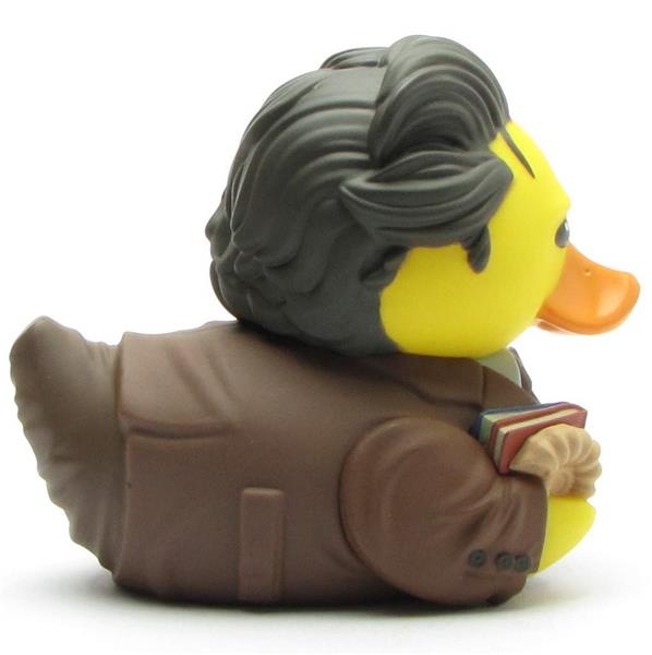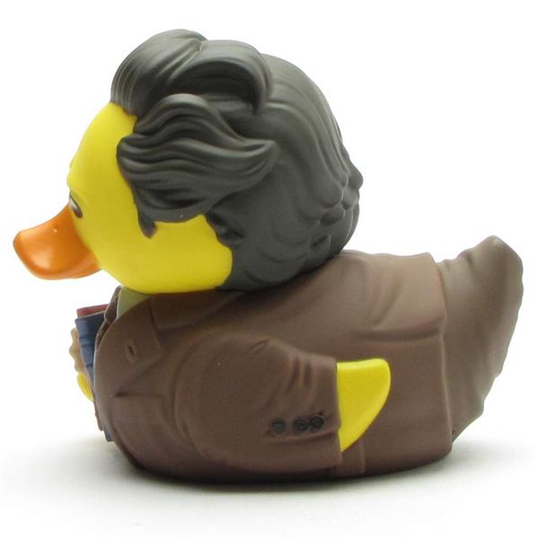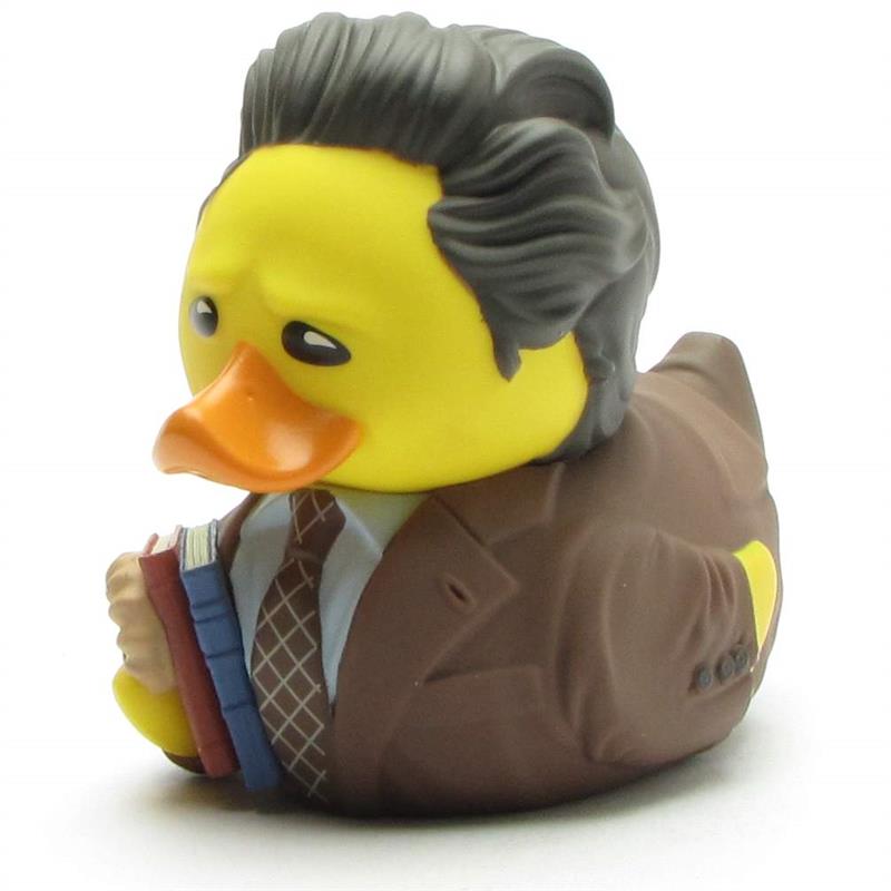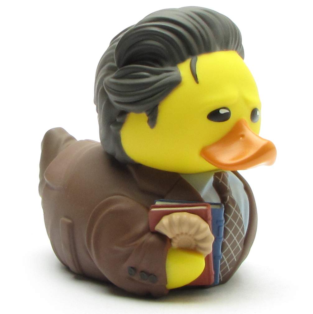 Ross Geller als Badeente? Wie passend – schließlich dreht sich bei Ross eh alles um Evolution, Paläontologie und jetzt wohl auch… spritzige Badeabenteuer! Mit Anzug, Krawatte und einem Fossil in der Hand zeigt sich Ross von seiner wissenschaftlichsten Seite – perfekt, um mit dir über die Badewannen-Wasseroberfläche zu philosophieren. Und keine Sorge: Bei dieser Ente musst du keine Couch "pivotieren" – sie passt in jedes Badezimmer!